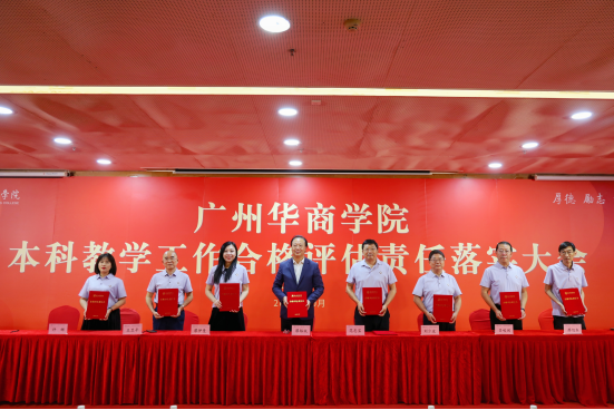 为进一步细化合格评估的标准和要求,有序推进我校本科教学工作合格评估,落实大会上,廖榕就董事长与全体校领导、党委书记陈玉欢与各二级学院及职能部门负责人分别签署本科教学工作合格评估责任书。