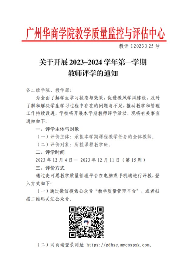 关于开展2023-2024学年第一学期教师评学的通知.pdf