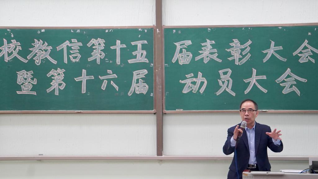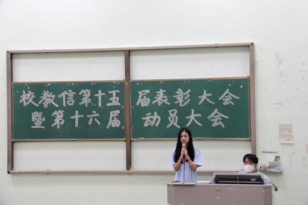 首先,大会在主持人的致辞中拉开了序幕。在一段精彩的回顾短片后,第十五届教信主任陈泳宇同学进行发言,陈同学对上一年的工作做了总结,并对新干部抱有很大的期望,他坚信长江后浪推前浪,希望新一届干部能够把教信带到另一个新的高度。紧接着,嘉宾分别为两届教信成员颁发聘书及为优秀干部颁奖,大会在此达到了高潮。接过聘书,第十六届校教信主任石沁茹进行了就职发言,石沁茹同学表示手中的这一份聘书承载的是厚重的责任与精神,她感谢老师和师兄师姐对她的信任,她也将会带领新一届干部摈除浮躁,脚踏实地,共同努力,力求新的成绩。