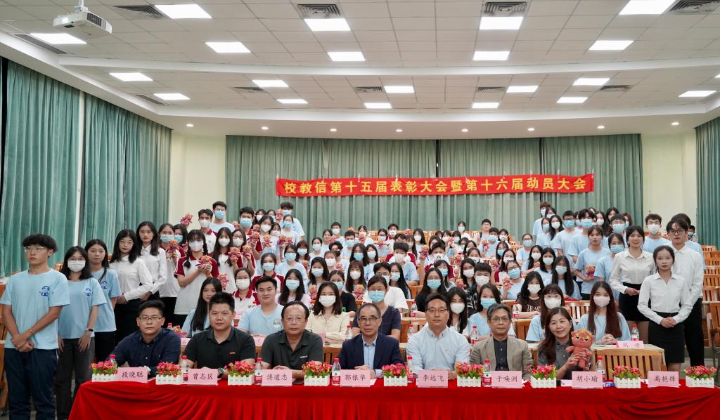 踵事增华,共谱华章。值第十五届及第十六届校教信干部换届之际,校学生教学信息中心于10月25日19:00在励志楼A208召开第十五届表彰大会暨第十六届动员大会。本次会议是近年来教信中心举办的最为隆重的一次会议,会议旨在总结过去,展望未来,进一步推动学生教学信息员队伍建设,开创教信工作高质量发展新局面。广州华商学院郭银华执行校长、教学质量监控与评估中心胡小瑜主任、教学督导办于唤洲主任、实验教学与网络技术管理中心曾志区主任、教务处傅道忠处长、教务处段晓聪副处长、张赟老师、付双纳老师、杨朝凤老师出席本次会议,第十五届及第十六届校教信增城校区全体成员、十佳优秀信息员及各兄弟组织代表参加本次会议。